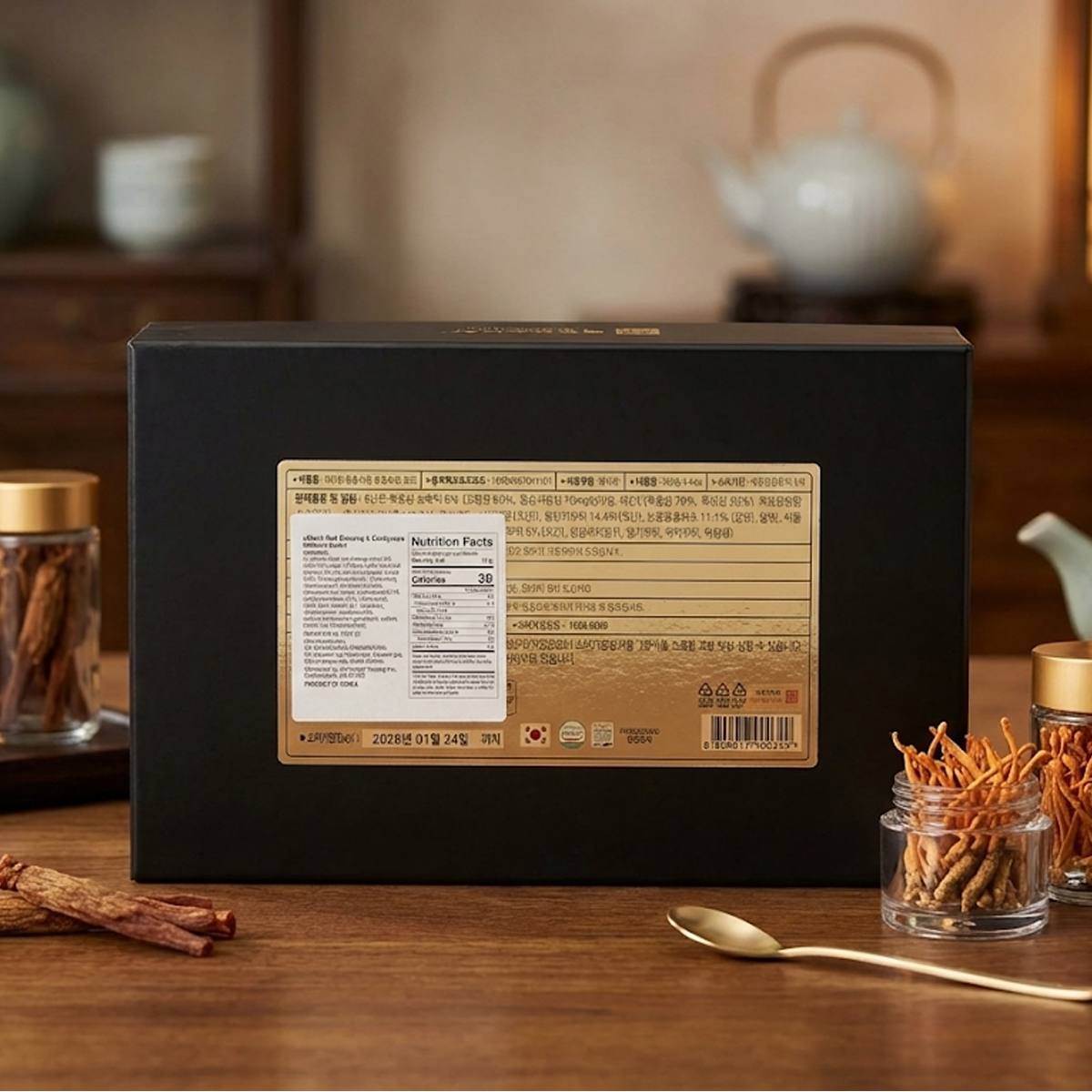 6-Year-Old Korean Black Ginseng: Undergoes a nine-time steaming and drying process to maximize its saponin content for ultimate potency.